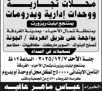 الجمعية التعاونية للبناء والإسكان لاعضاء المجالس الشعبية المحلية بأسيوط ارشيف الاعلانات, اعلانات, اعلانات مزايدات