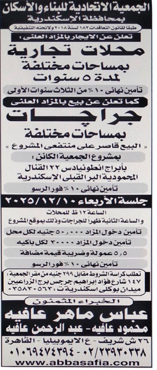 الجمعية التعاونية للبناء والإسكان لاعضاء المجالس الشعبية المحلية بأسيوط ارشيف الاعلانات, اعلانات, اعلانات مزايدات